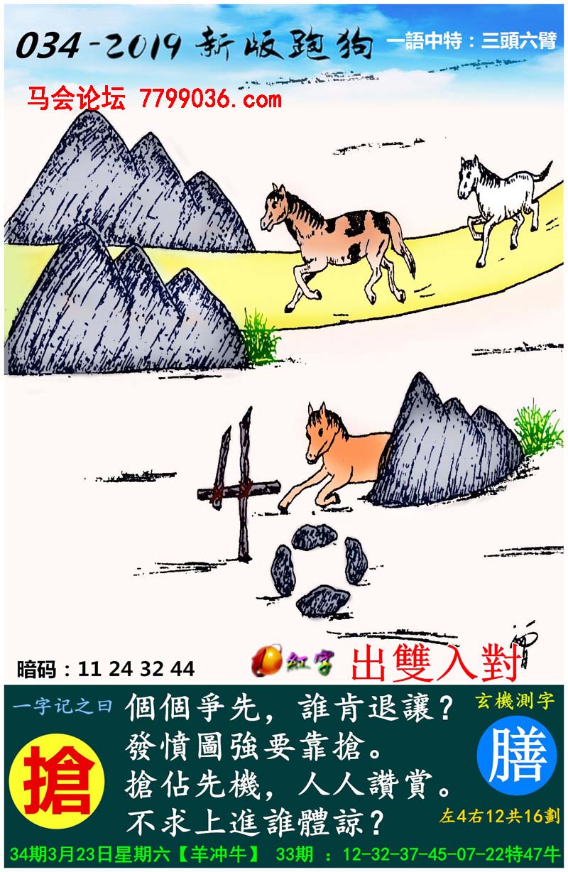 034期新版跑狗一字記之曰:【搶】