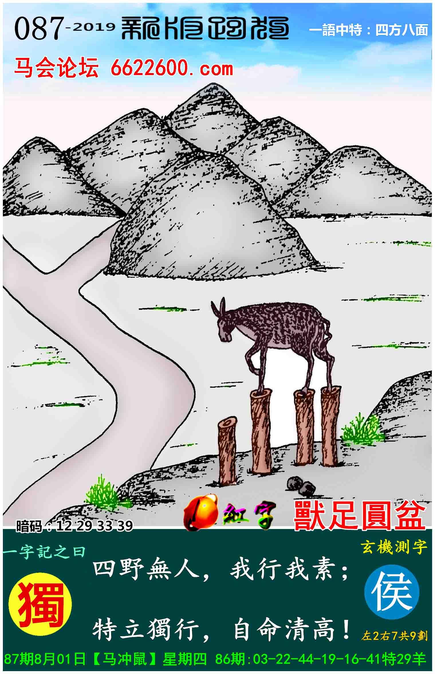 087期新版跑狗一字記之曰:【獨】