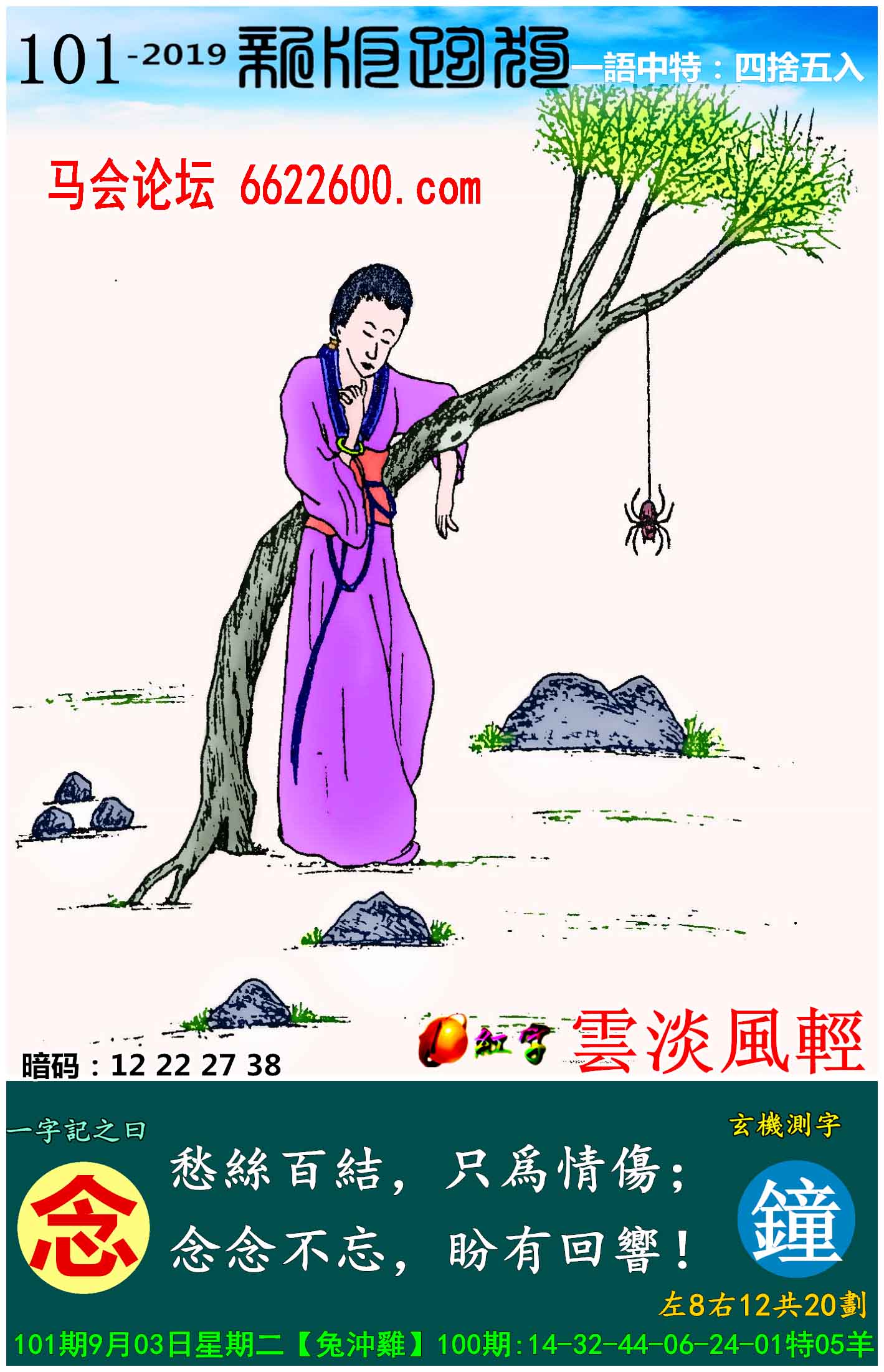 主题 : 101期:新版跑狗一字記之曰【念】玄機測字:《鐘》