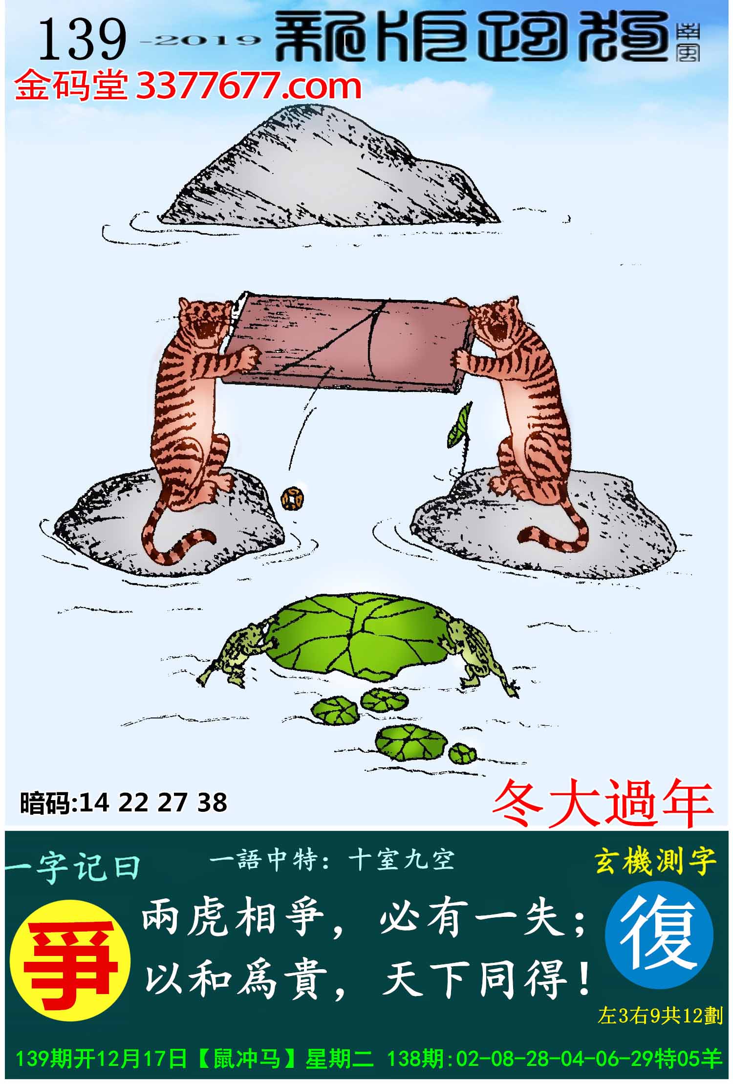 主题 : 139期:新版跑狗一字記之曰【爭】玄機測字:《復》