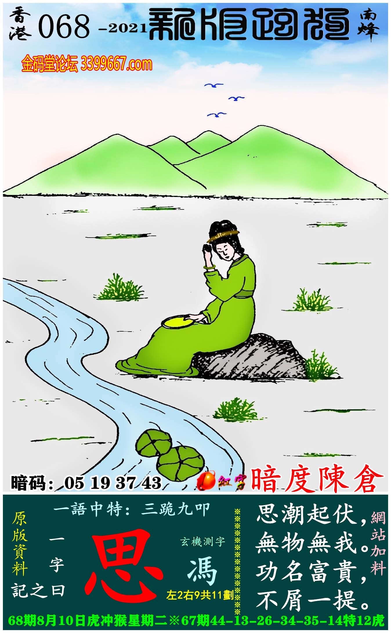 主题 : 068期:新版跑狗一字記之曰【思】玄機測字:《馮》