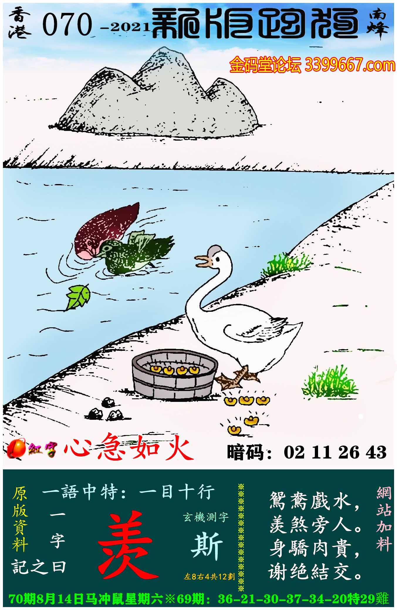 070期:新版跑狗一字記之曰【羡】玄機測字:《斯》