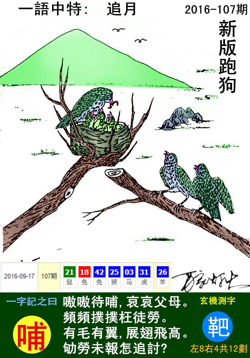 主题 : 078期:新版跑狗一字記之曰【哺】玄機測字:《輚》