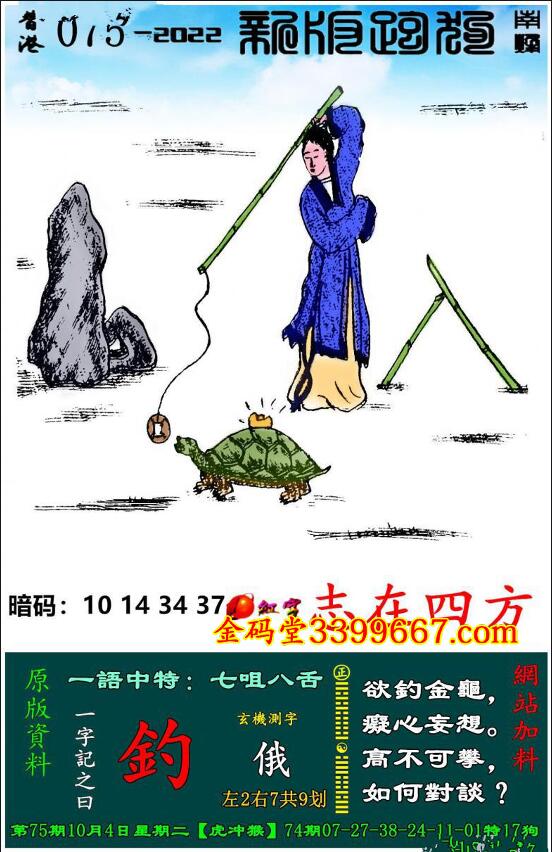 075期新版跑狗一字記之曰:【釣】