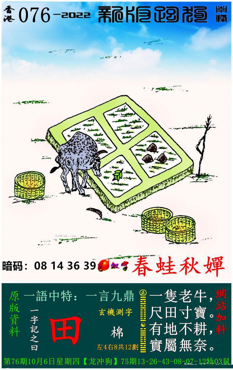 主题 : 076期:新版跑狗一字記之曰【田】玄機測字:《棉》