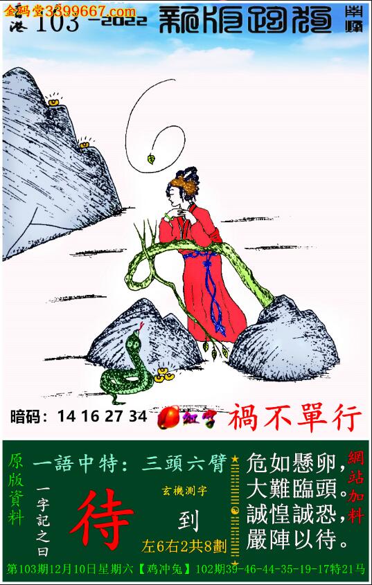 103期新版跑狗一字記之曰:【待】
