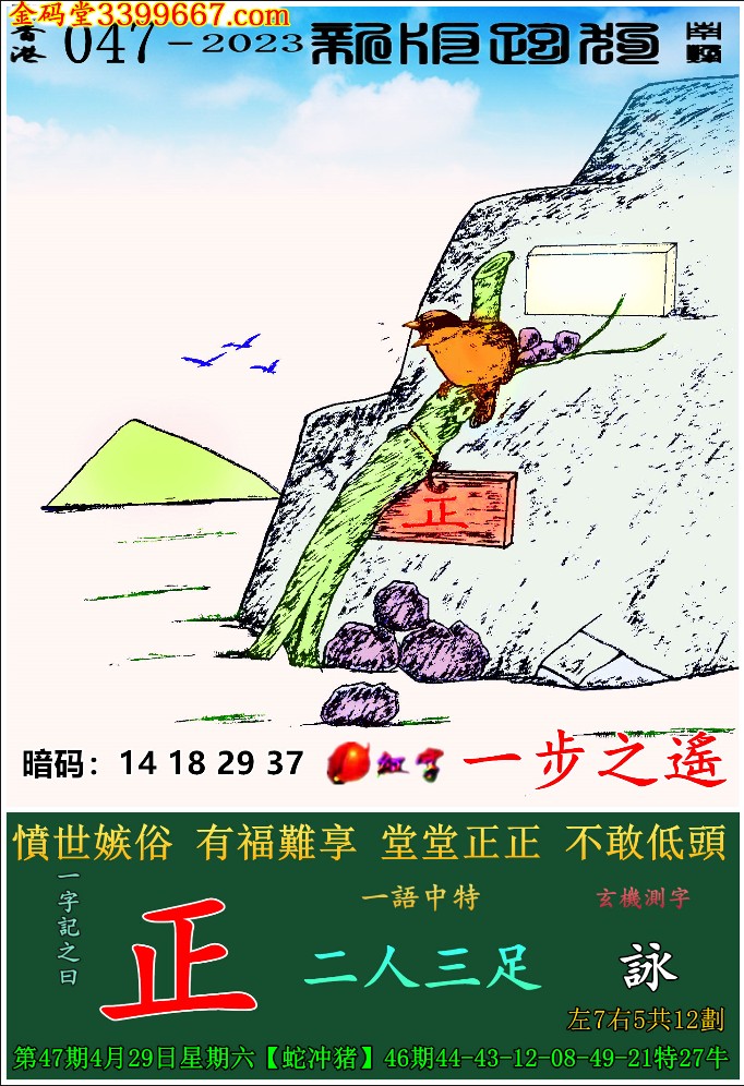 主题 : 047期:新版跑狗一字記之曰【正】 玄機測字:《詠》