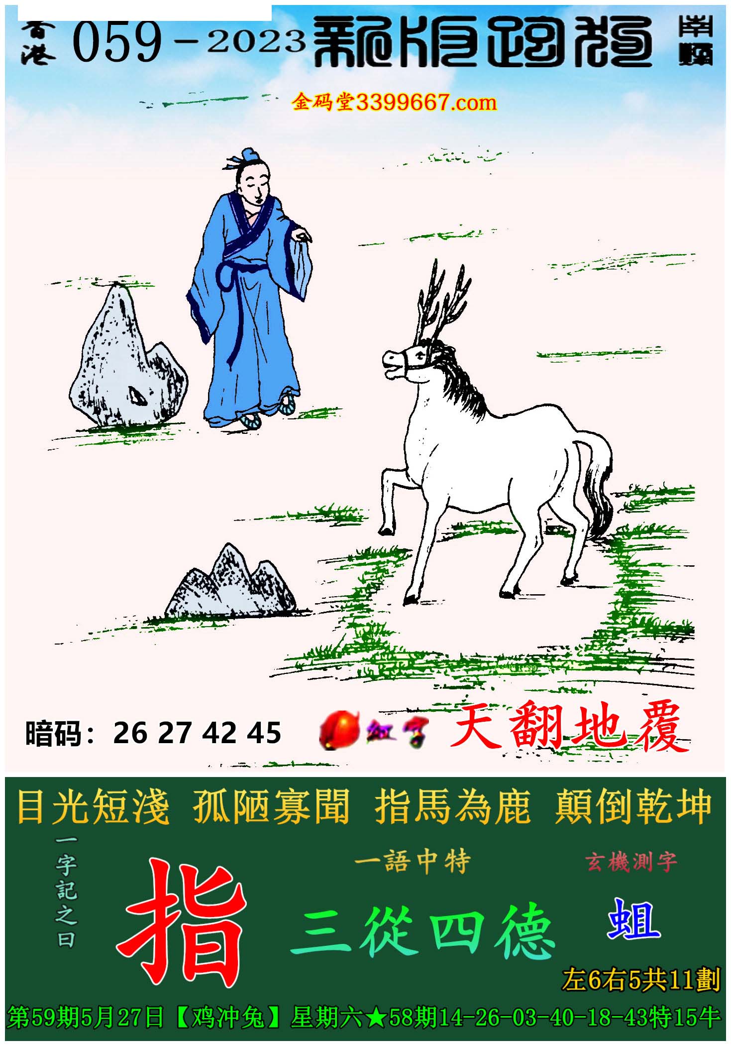 059期新版跑狗一字記之曰:【指】