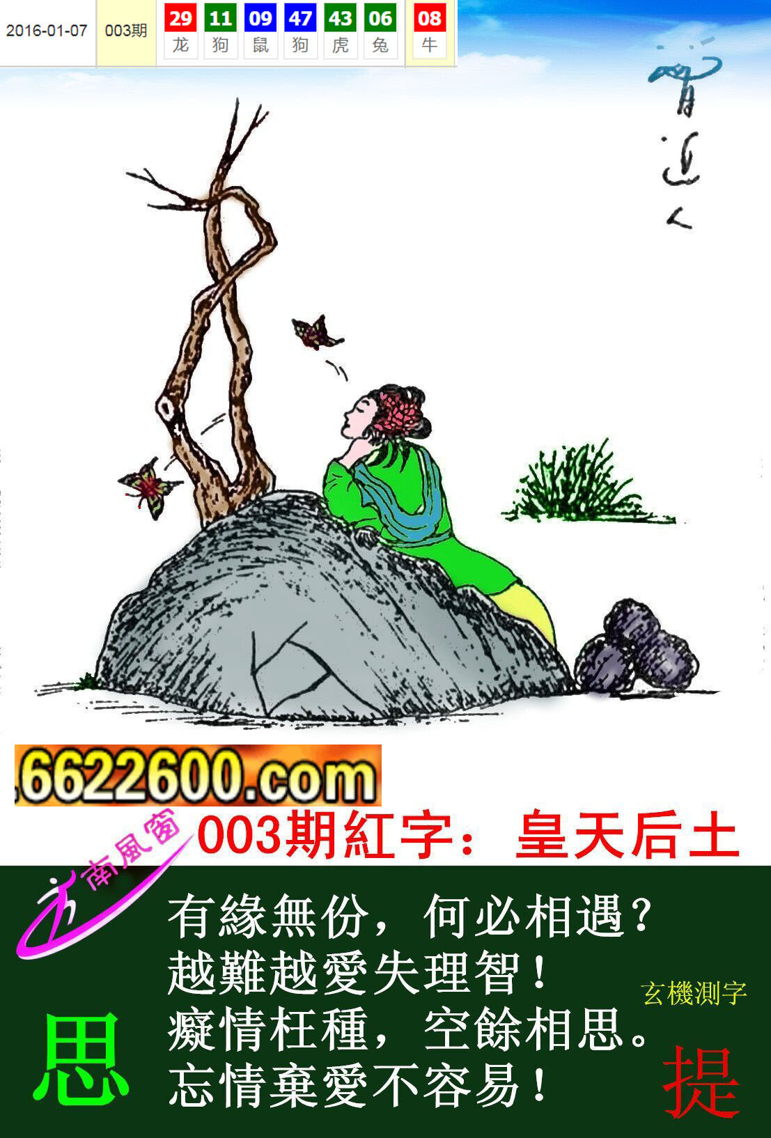 006期新版跑狗一字記之曰:【蝶】