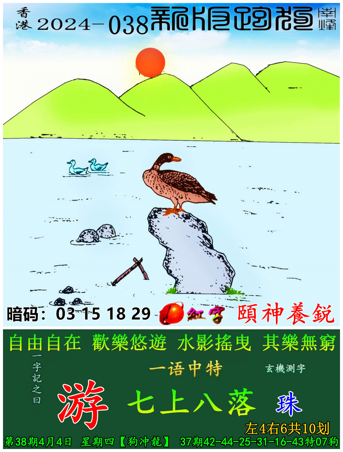 主题 : 038期:新版跑狗一字記之曰【游】 玄機測字:【珠】