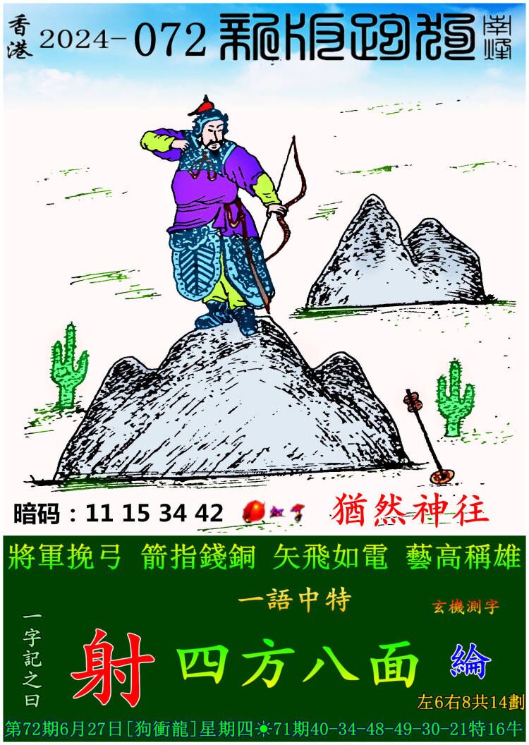 072期新版跑狗一字記之曰:【射】