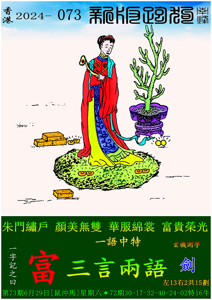 073期新版跑狗一字記之曰:【富】