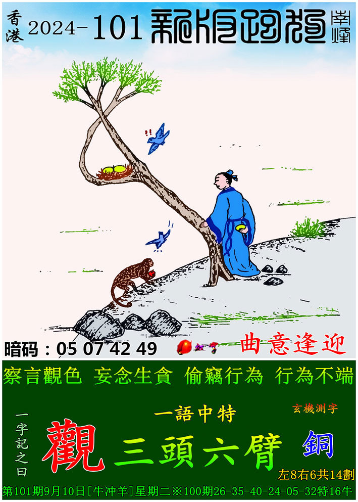 101期:新版跑狗一字記之曰【觀】 玄機測字:【銅】