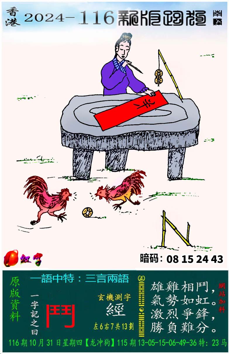 116期:新版跑狗一字記之曰【鬥】 玄機測字:【經】