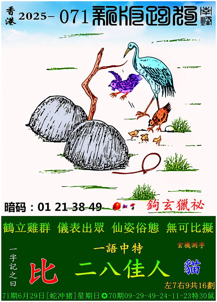 071期:新版跑狗一字記之曰【比】 玄機測字:【貓】