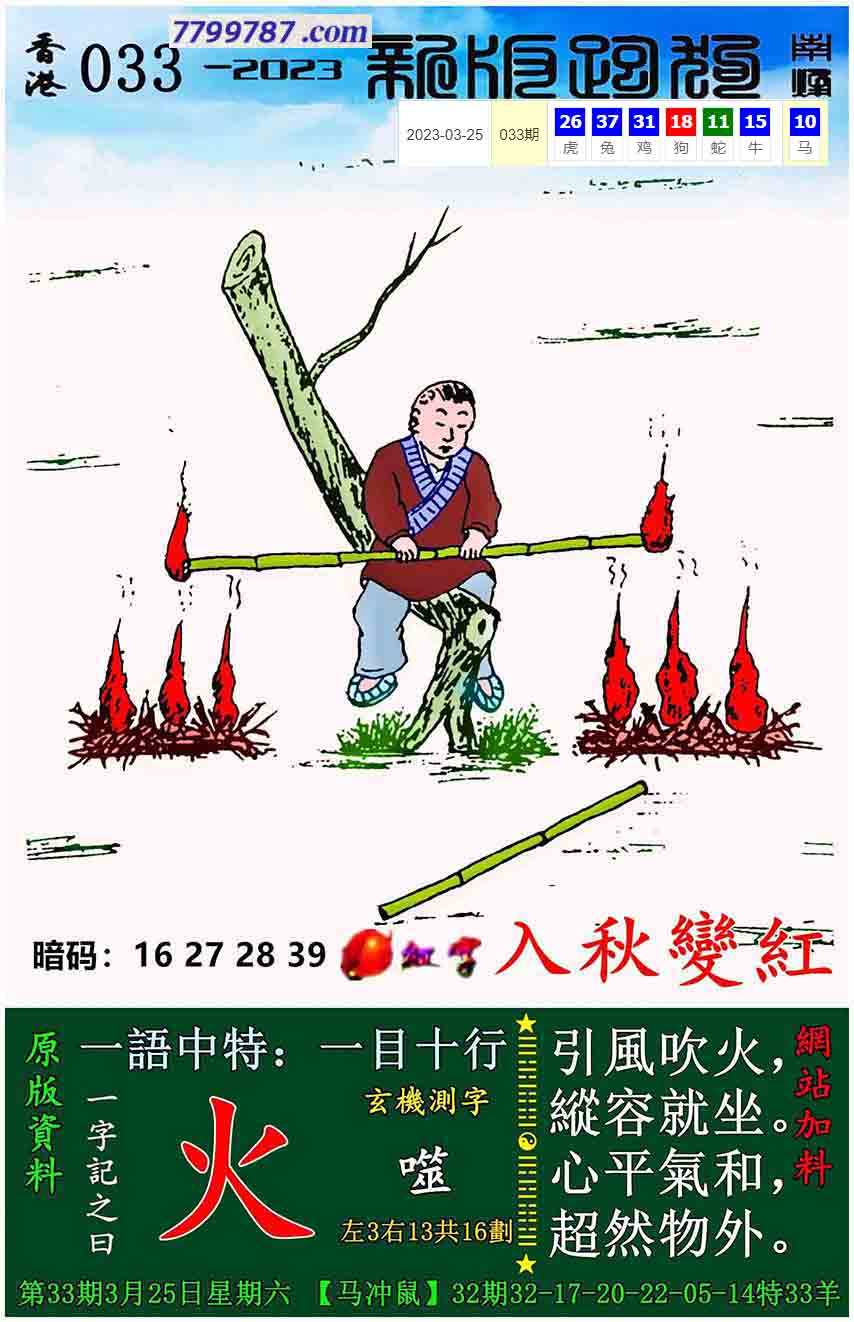 088期:新版跑狗一字記之曰【火】 玄機測字:【詩】