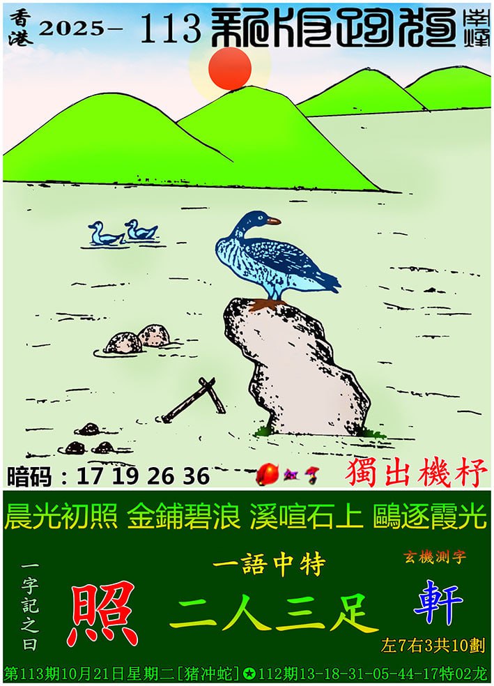 主题 : 113期:新版跑狗一字記之曰【照】 玄機測字:【軒】