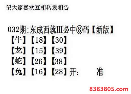 032期:另版【东成西就四肖8码】